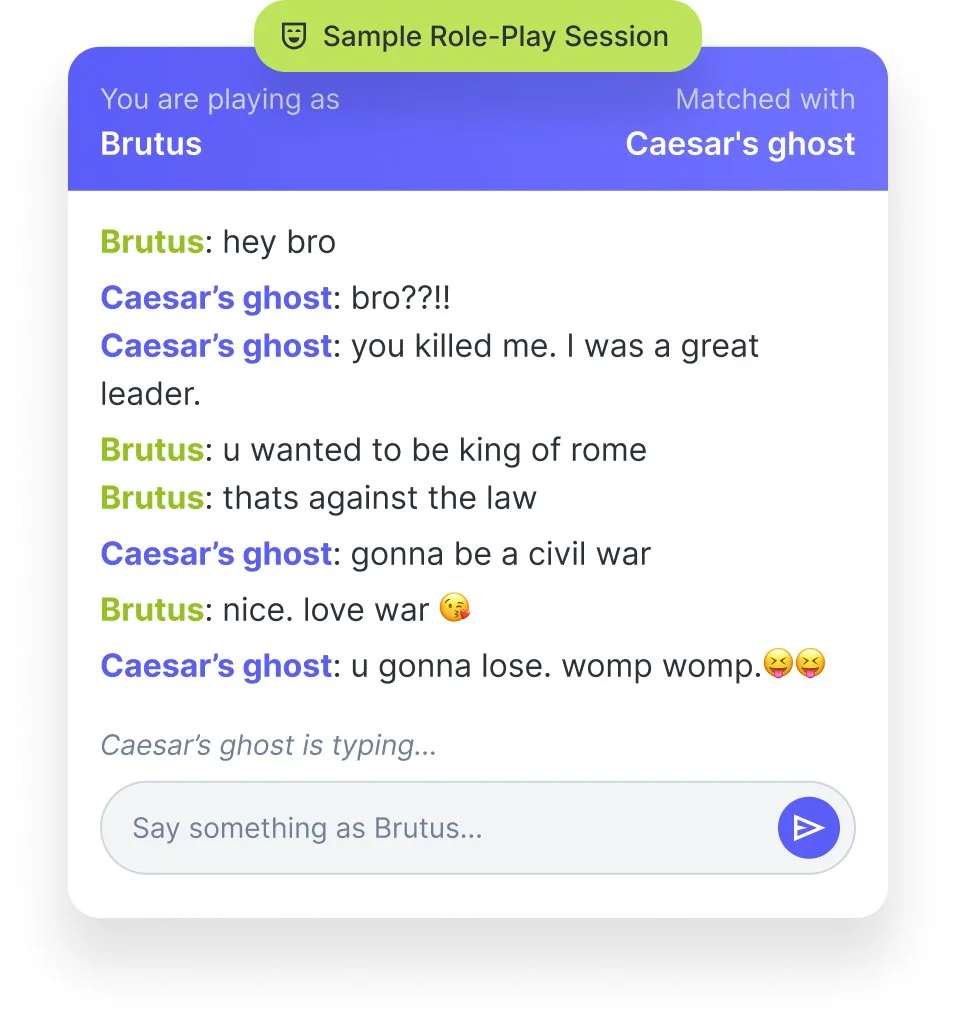 What if students could step into those stories instead? How might we help them take on a role, speak as a character, and experience history and literature in a way that feels real, memorable, and genuinely fun, without creating extra work for teachers?